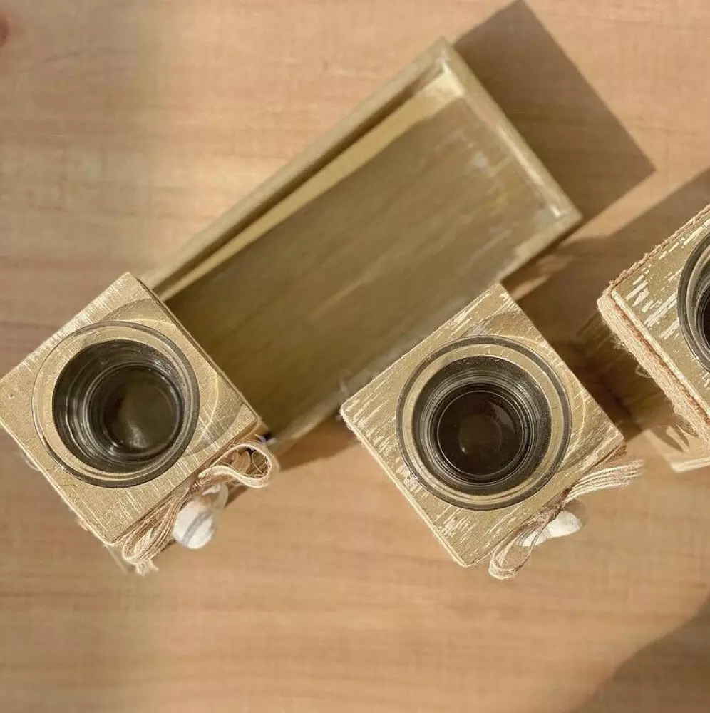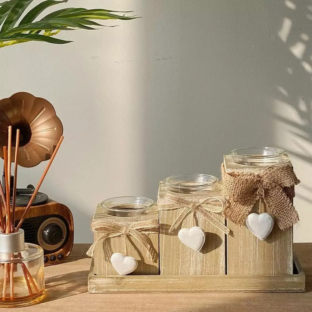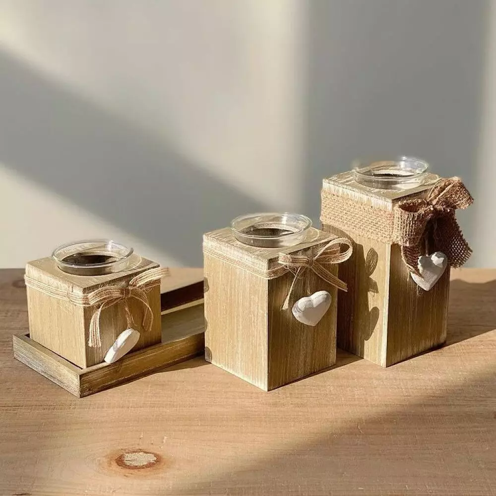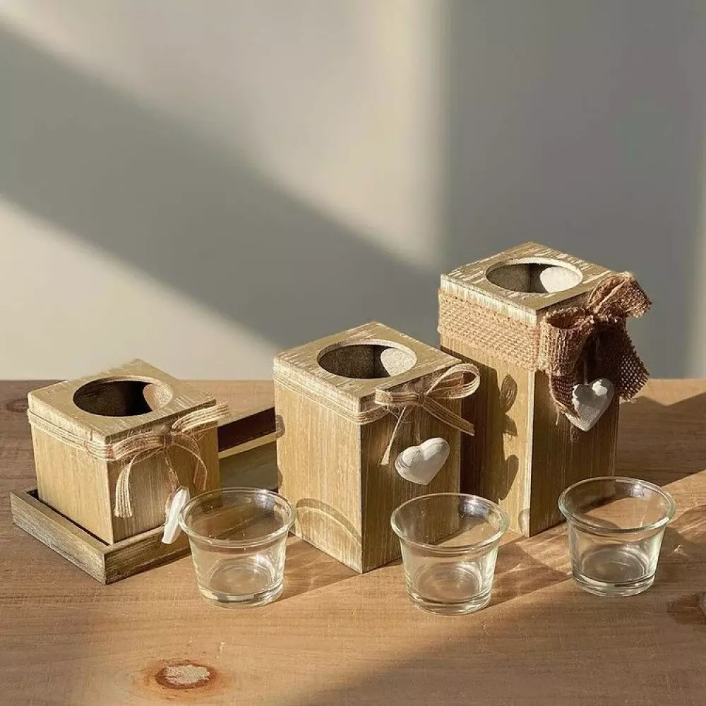 | أبعاد المنتج | ارتفاع الكبير: 15 سم، ارتفاع الوسط: 12 سم، ارتفاع الصغير: 9 سم، مقاس صحن الشمعة 4.5 سم |
