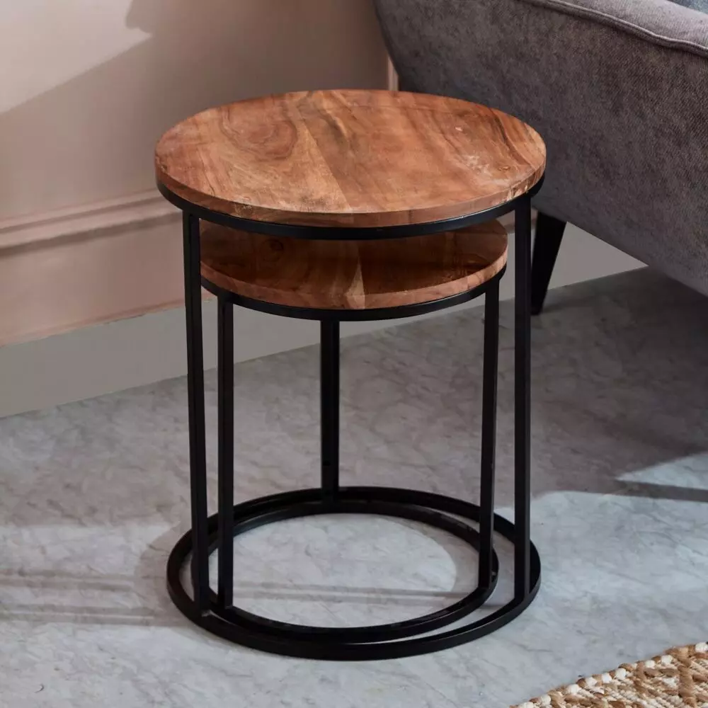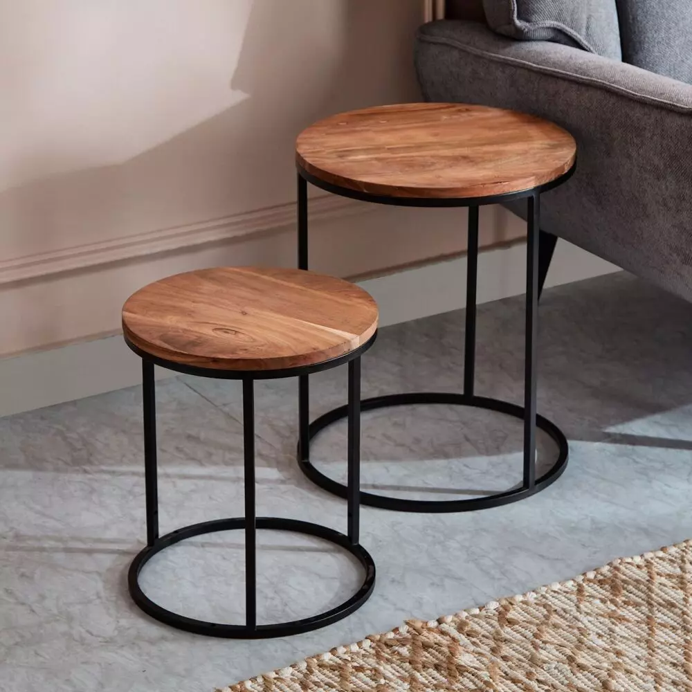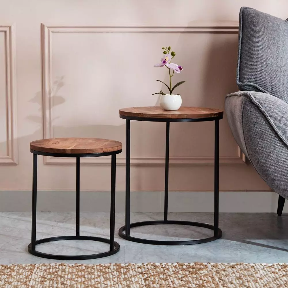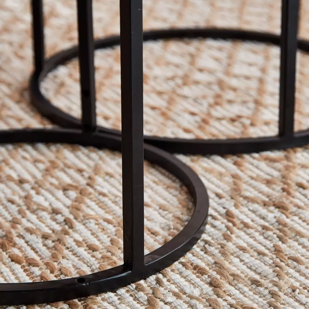 طاولة 1 القُطر: 40 سم x الوزن: 6 كجم x الارتفاع: 50 سم طاولة 2 القُطر: 33 سم x الارتفاع: 40 سم |