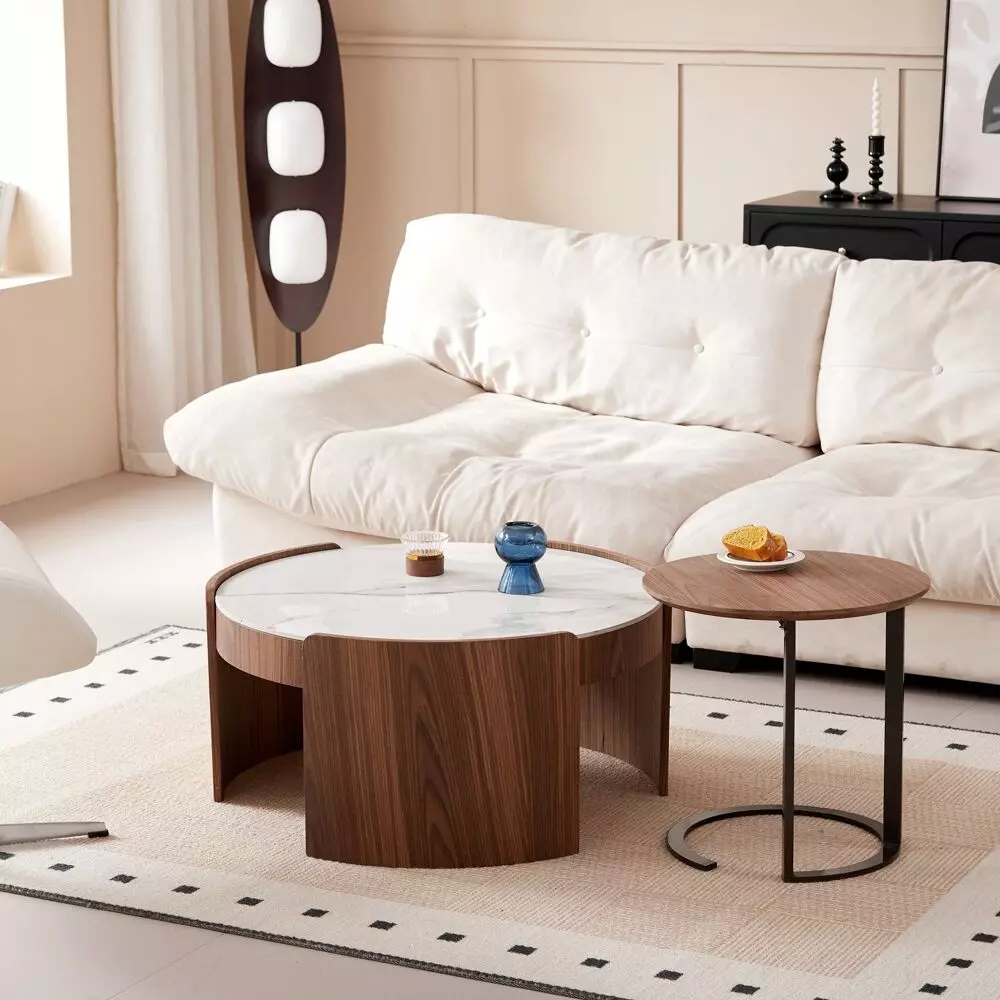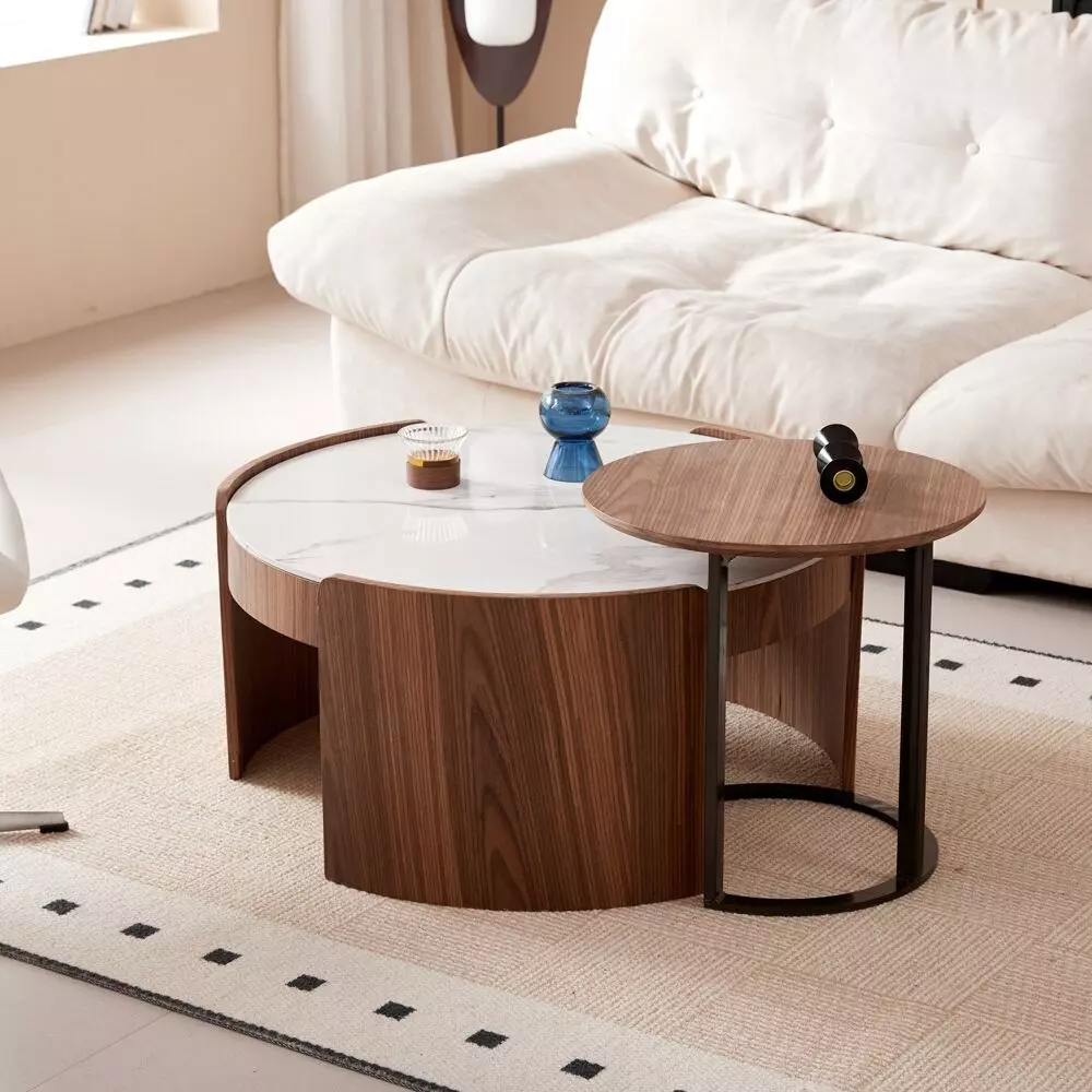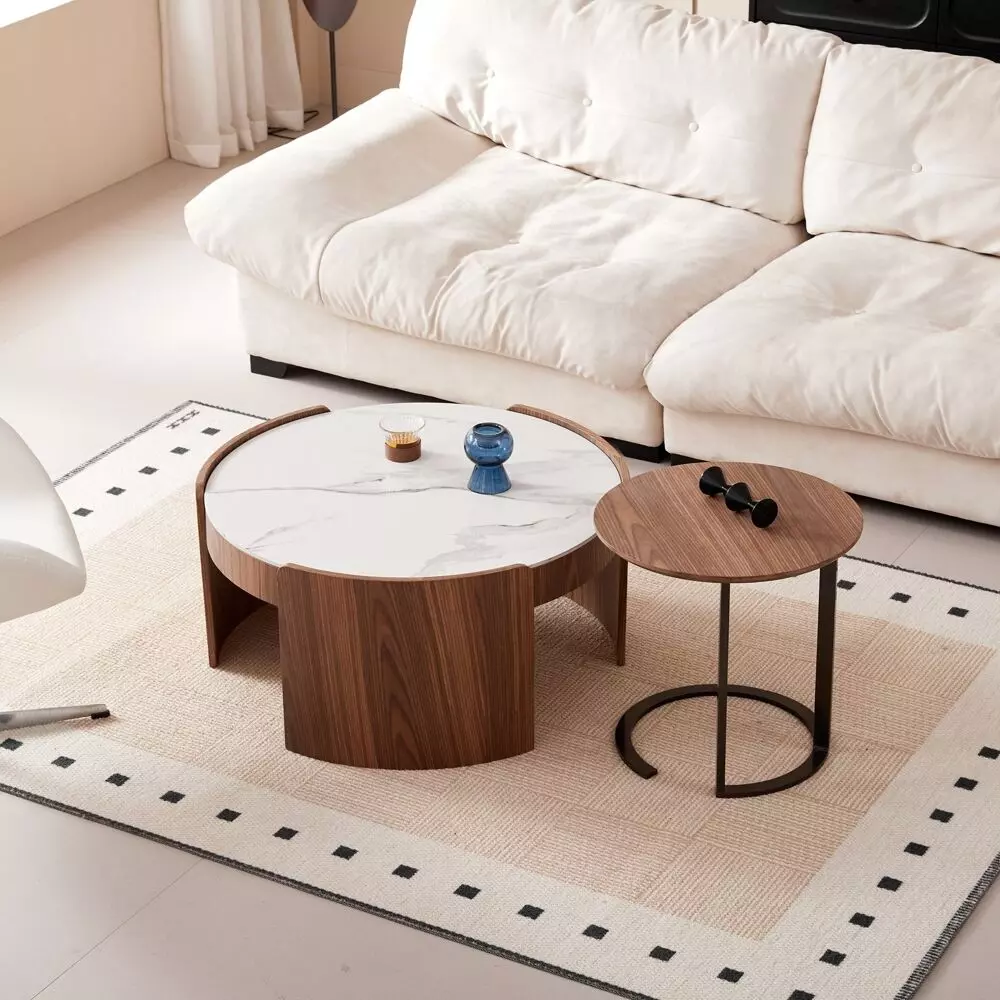طاولة 1 الوزن: 28.5 كجم x القطر: 80 سم x الارتفاع: 38 سم طاولة 2 القطر: 50 سم x الارتفاع: 46 سم |