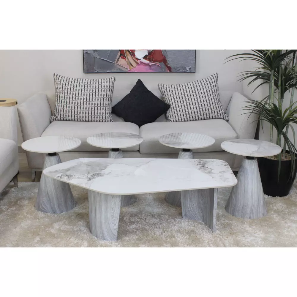 | يتضمن الطقم | 1 طاولة قهوة - 4 طاولة جانبية |