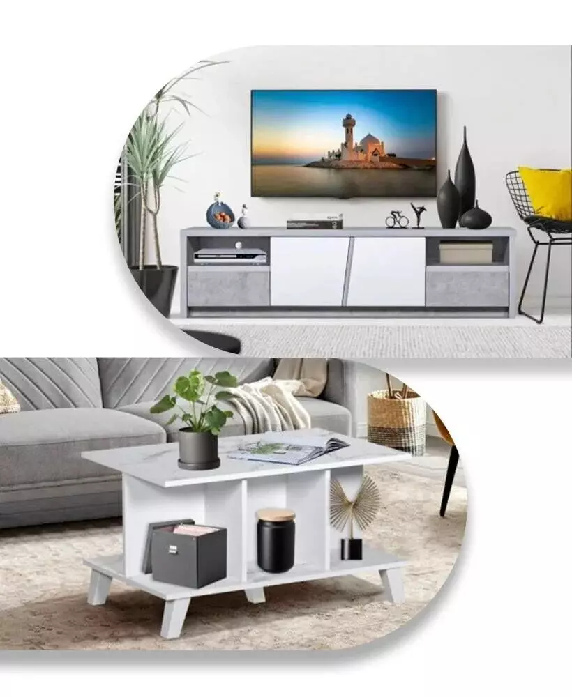 | يتضمن الطقم | 1 طاولة تلفزيون 1 طاولة قهوة فقط |