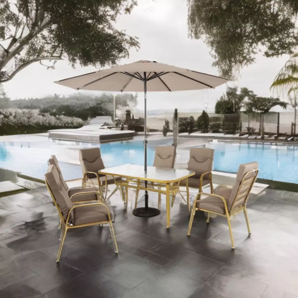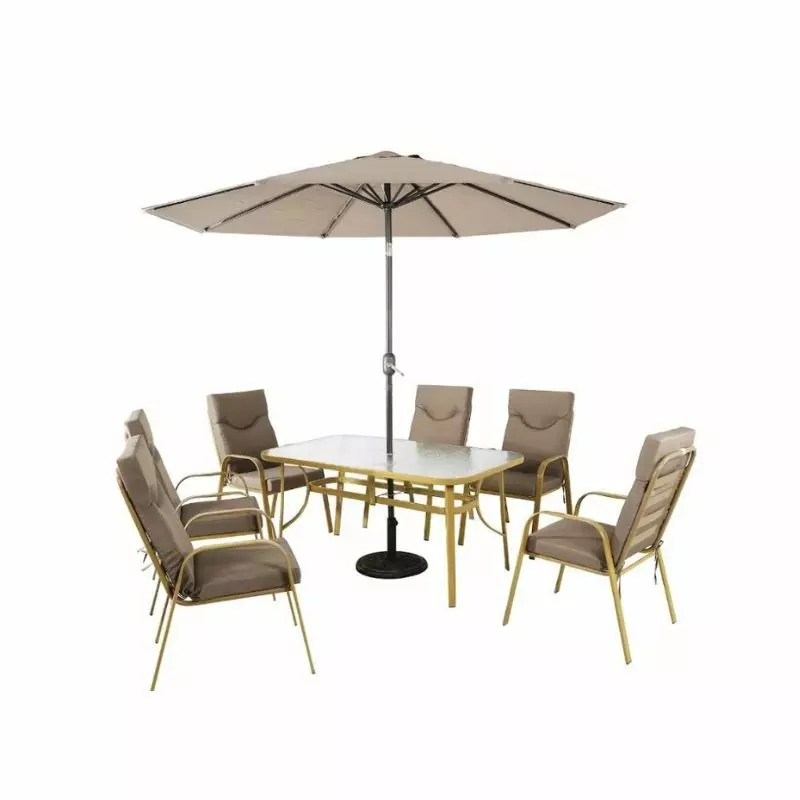 | يتضمن الطقم | 1 طاولة طعام مع مظلة - 6 كراسي |