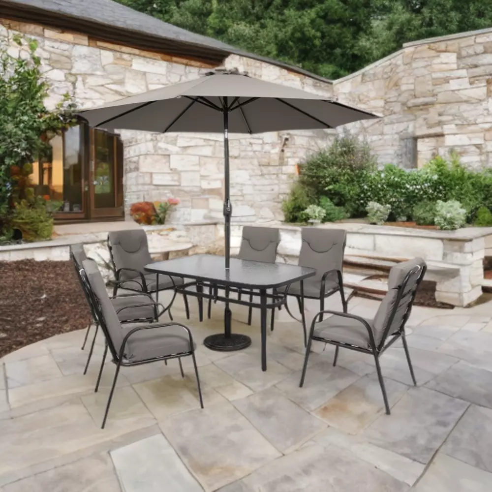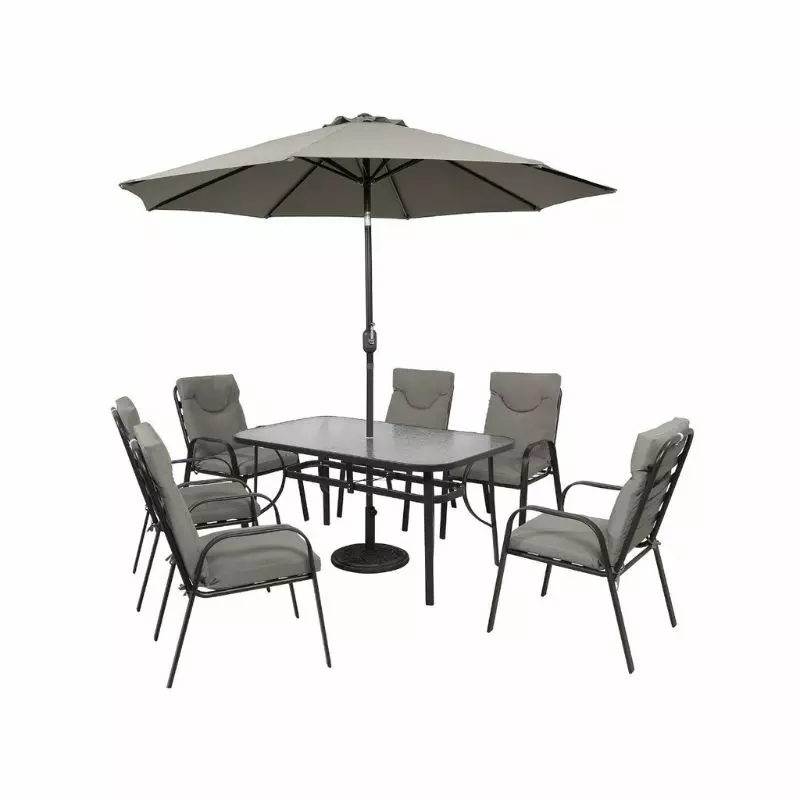 | يتضمن الطقم | 1 طاولة طعام مع مظلة - 6 كراسي |
