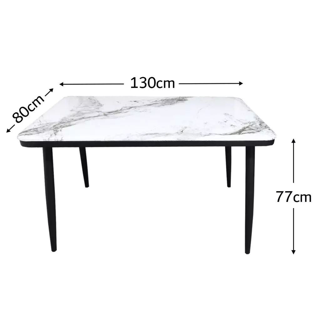 ابعاد طاولة الطعام العرض 130 - العمق 80 - الارتفاع 77 ابعاد الكرسي العرض من الاسفل 38 - عرض المقعد 43 - العمق 42 - الارتفاع 90 |