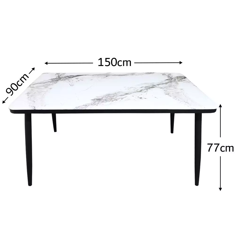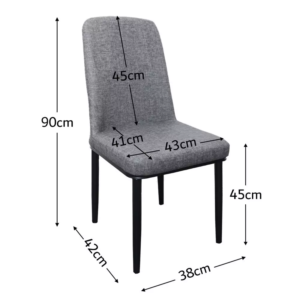 ابعاد طاولة الطعام العرض 150 - العمق 90 - الارتفاع 77 ابعاد الكرسي العرض من الاسفل 38 - عرض المقعد 43 - العمق 42 - الارتفاع 90 |