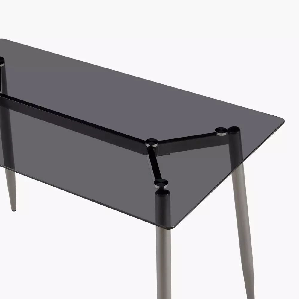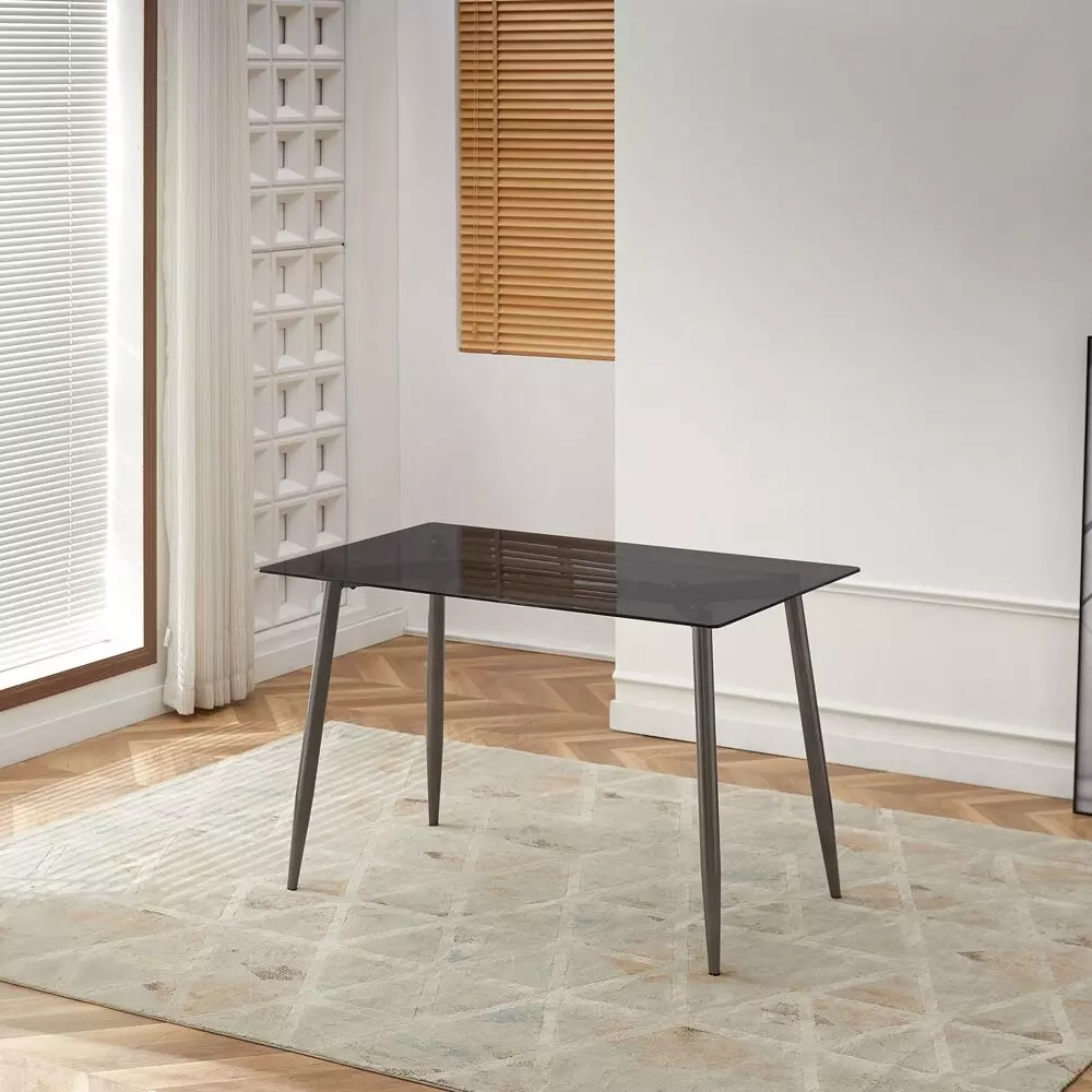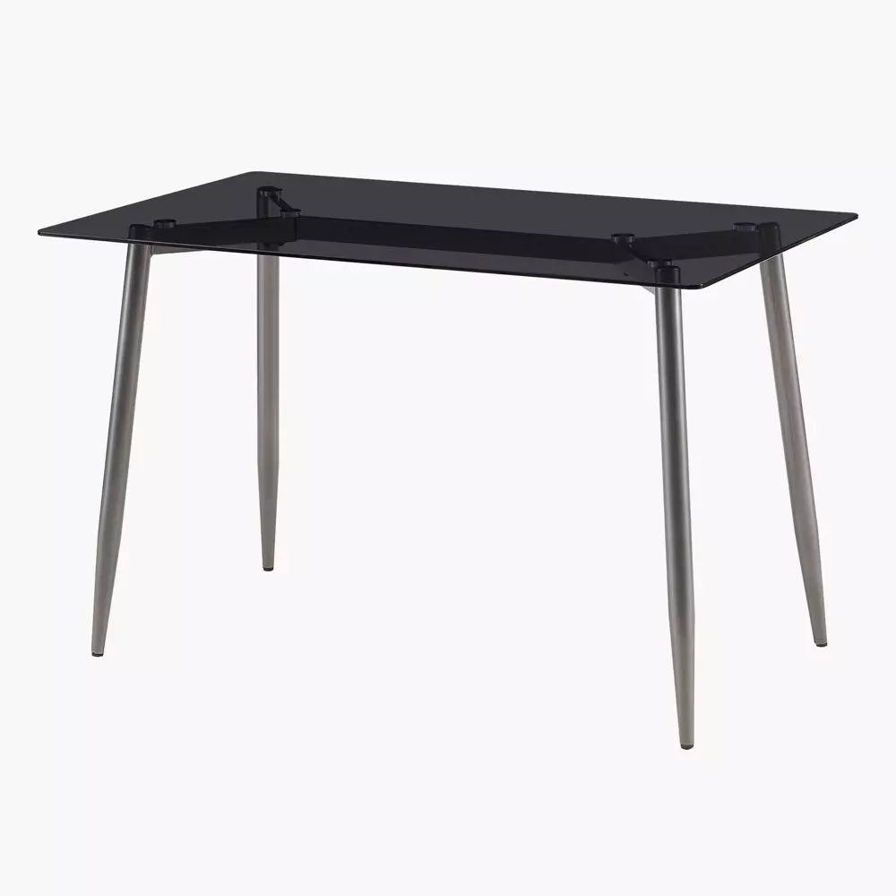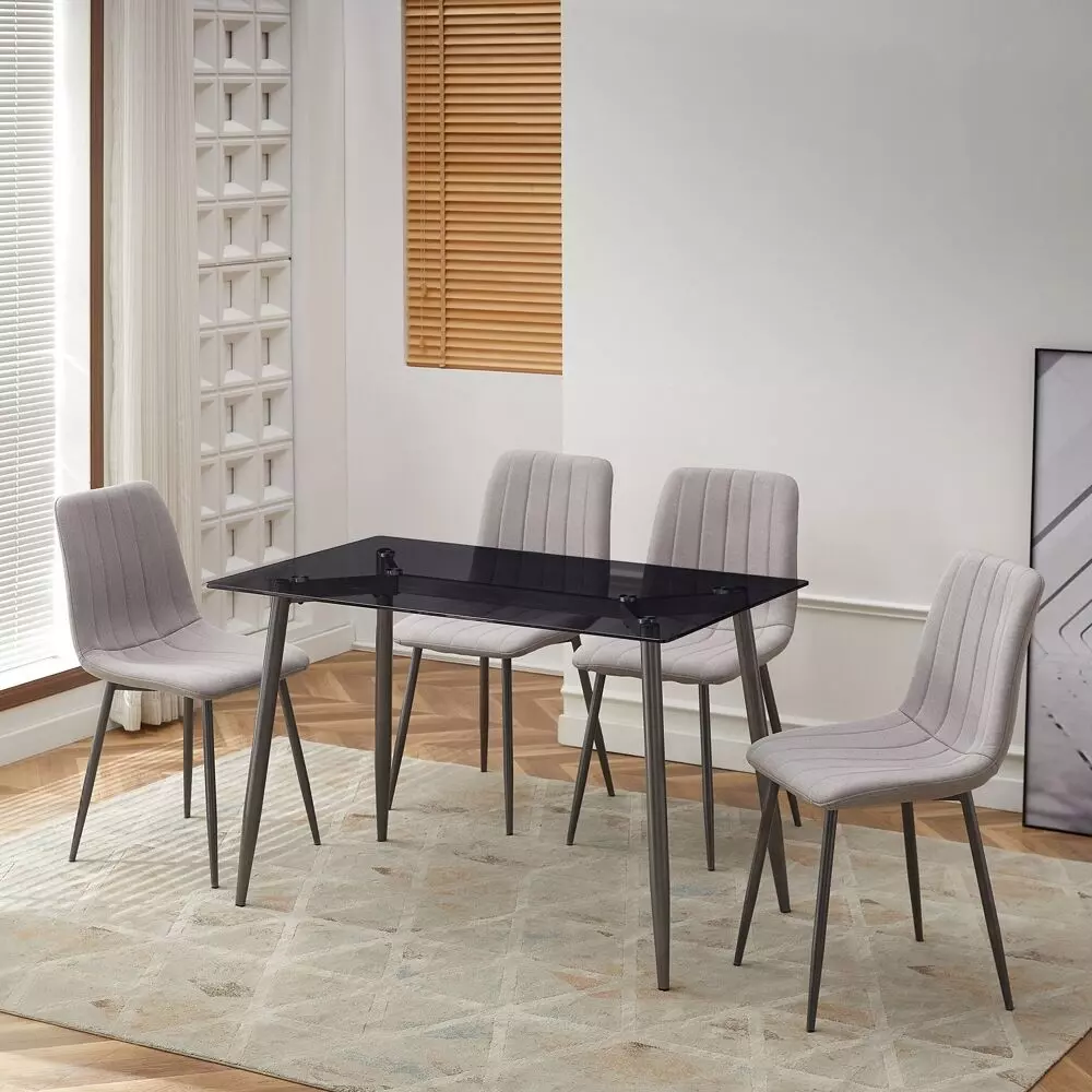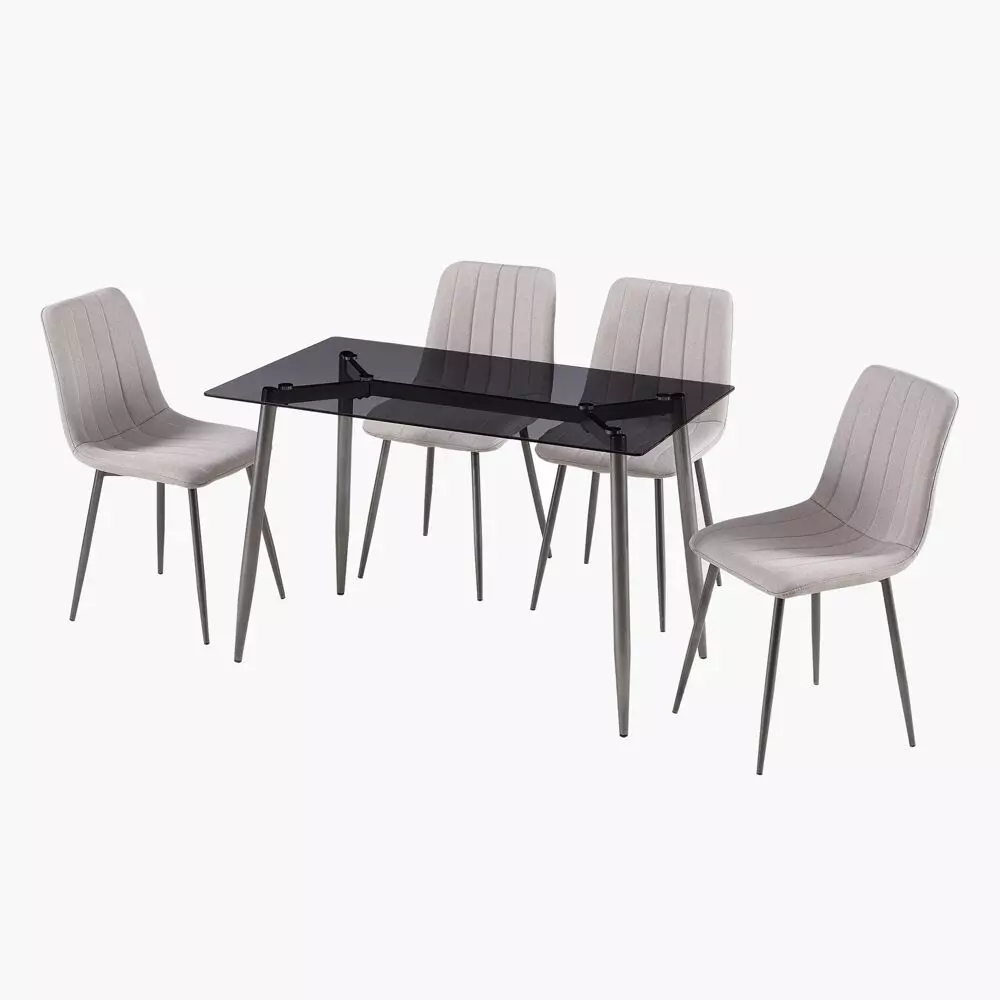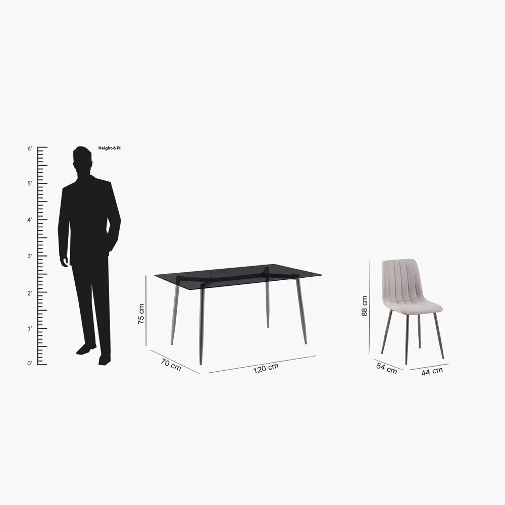 عززي أناقة التصميم الداخلي لمنزلك مع طقم السفرة الرائع ذو الأربعة مقاعد هذا. يتناقض الجزء العلوي المستطيل بشكل جميل مع أرجله القوية المصنوعة من الكروم، مما يخلق جاذبية بصرية آسرة. يرافق الطاولة كراسي دون ذراعين منجدة بدقة والتي تنضح بأسلوب راقي. تم تصميم هذه القطع لضمان المتانة، وهي مقاومة للخدوش والبقع، وتحافظ على سحرها لسنوات قادمة وتتطلب عناية منخفضة. يمكنك الاستمتاع بأوقات وجبات مريحة لا تُنسى مع أحبائك. سمك الزجاج العلوي للطاولة هو 8 مم.