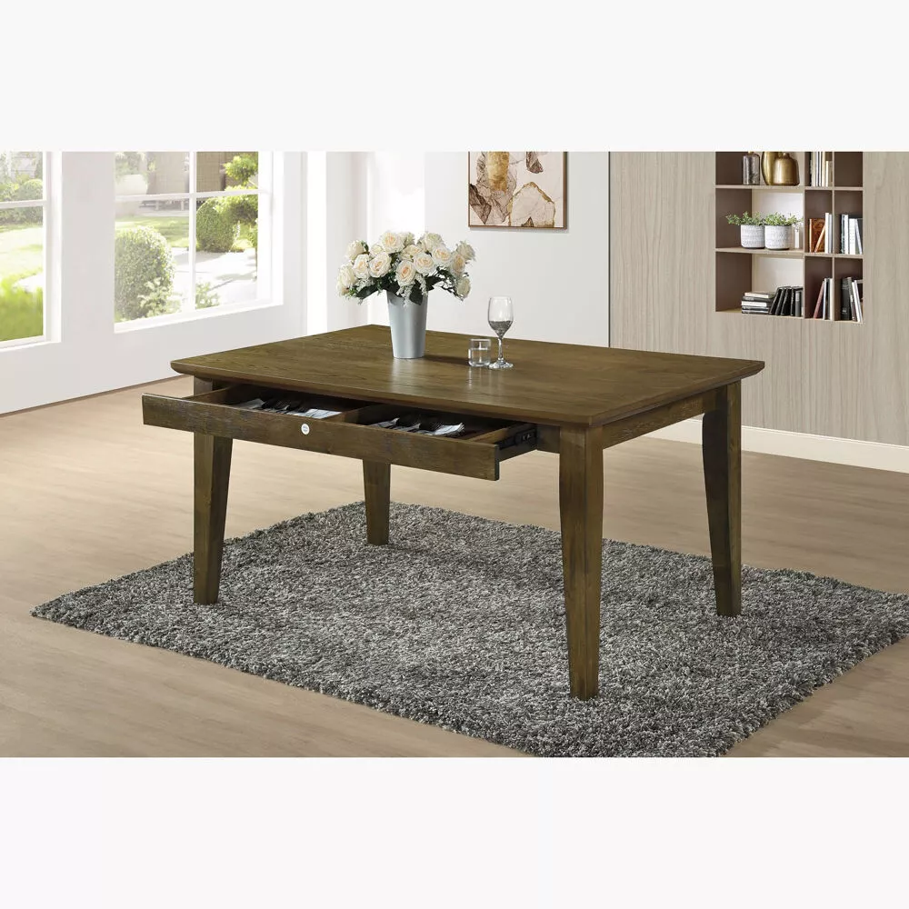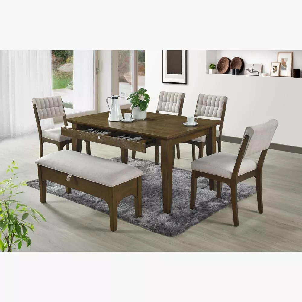 | يتضمن الطقم | 1 طاولة طعام- 1 مقعد بنش - 4 كراسي فقط |
