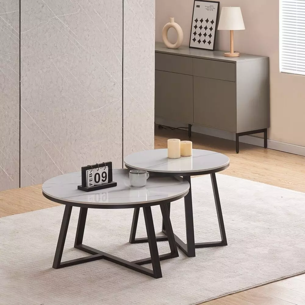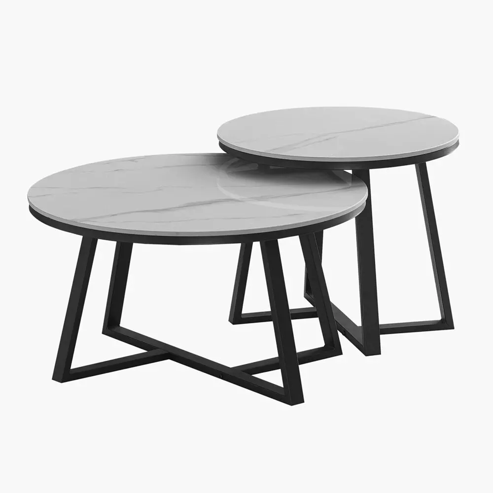 طاولة 1 القُطر: 80 سم x الوزن: 15 كجم x الارتفاع: 43 سم طاولة 2 القُطر: 60 سم x الوزن: 13 كجم x الارتفاع: 50 سم |