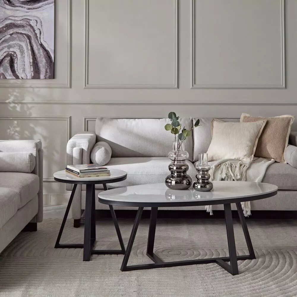 طاولة 1 الوزن: 24 كجم x العمق: 60 سم x الارتفاع: 48 سم x العرض: 120 سم طاولة 2 الوزن: 18 كجم x العمق: 50 سم x الارتفاع: 53 سم x العرض: 50 سم |