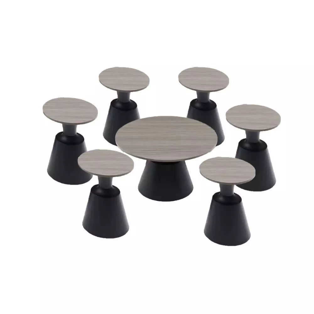 طقم طاولة قهوة جميل وانيق يزيد من اناقة منزلك يتكون من طاولة قهوة و6 طاولات جانبية يأتي باللون الرمادي الغامق.