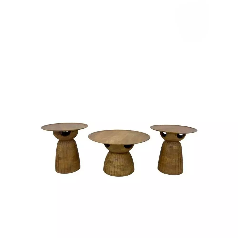 طقم طاولة قهوة خشب هندي طبيعي لينكو