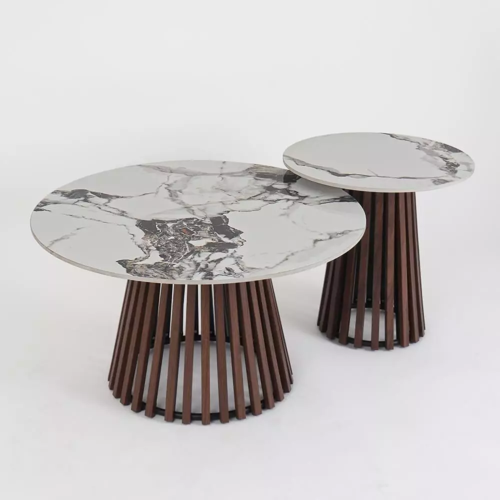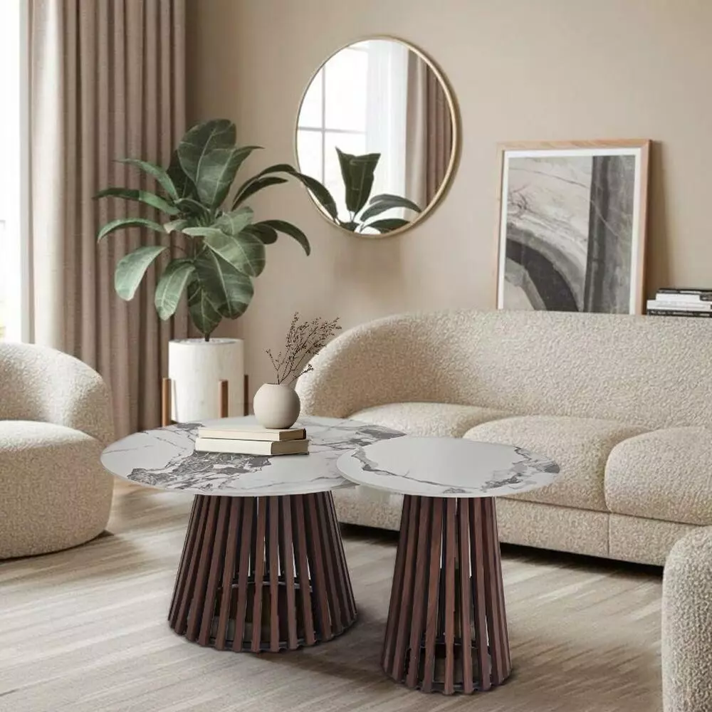 ابعاد طاولة القهوة القطر 80 - الارتفاع 46 ابعاد الطاولة الجانبية القطر 50 - الارتفاع 50 |