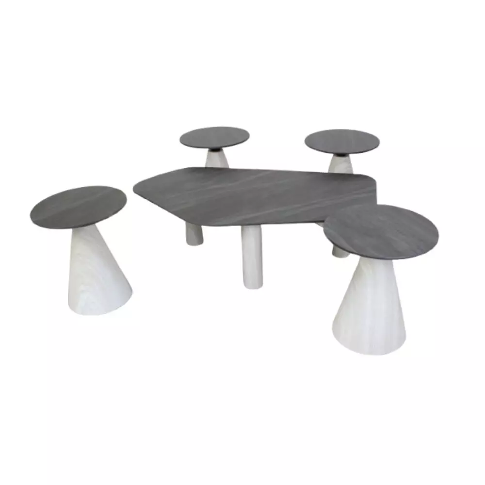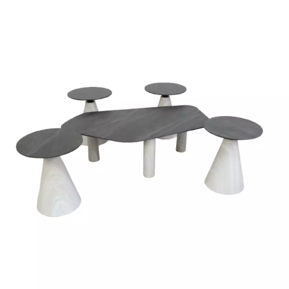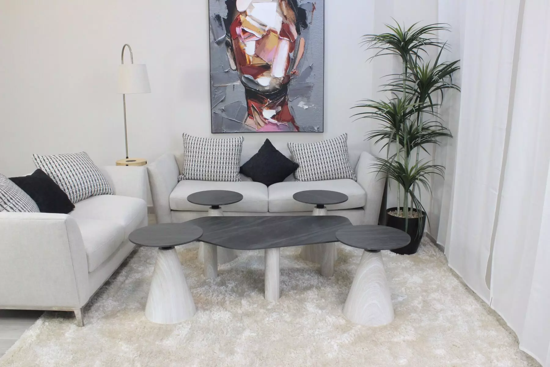 اقتني طقم طاولة القهوة سما واجمع بين الأناقة والجودة في آن واحد . يتكون الطقم من طاولة قهوة و 4 طاولة جانبية تحقق لك الاستفادة القصوى وتزيد من أناقة منزلك. مصنوع من السيراميك مع قواعد من الحديد لتضمن قوة ومتانة الطقم.