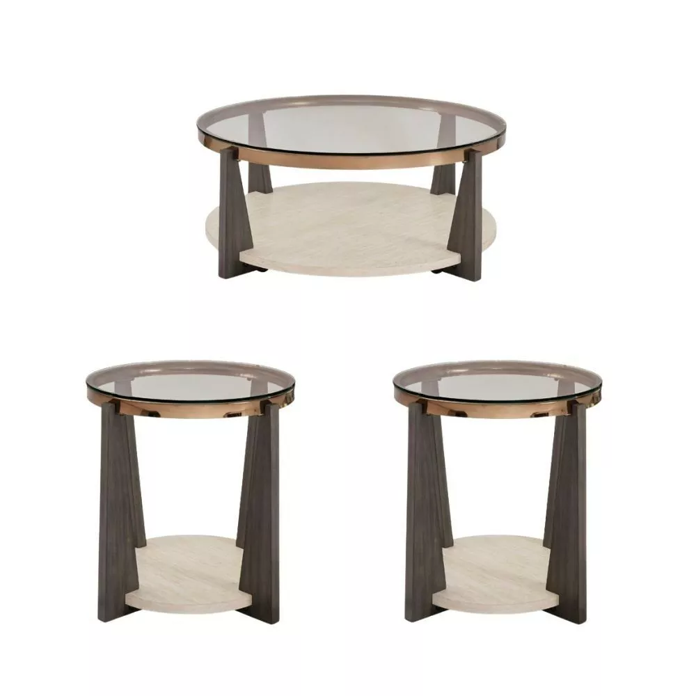 ابعاد طاولة القهوة القطر 106.68 - الارتفاع 43.18 سم ابعاد الطاولة الجانبية القطر 66.04 سم |