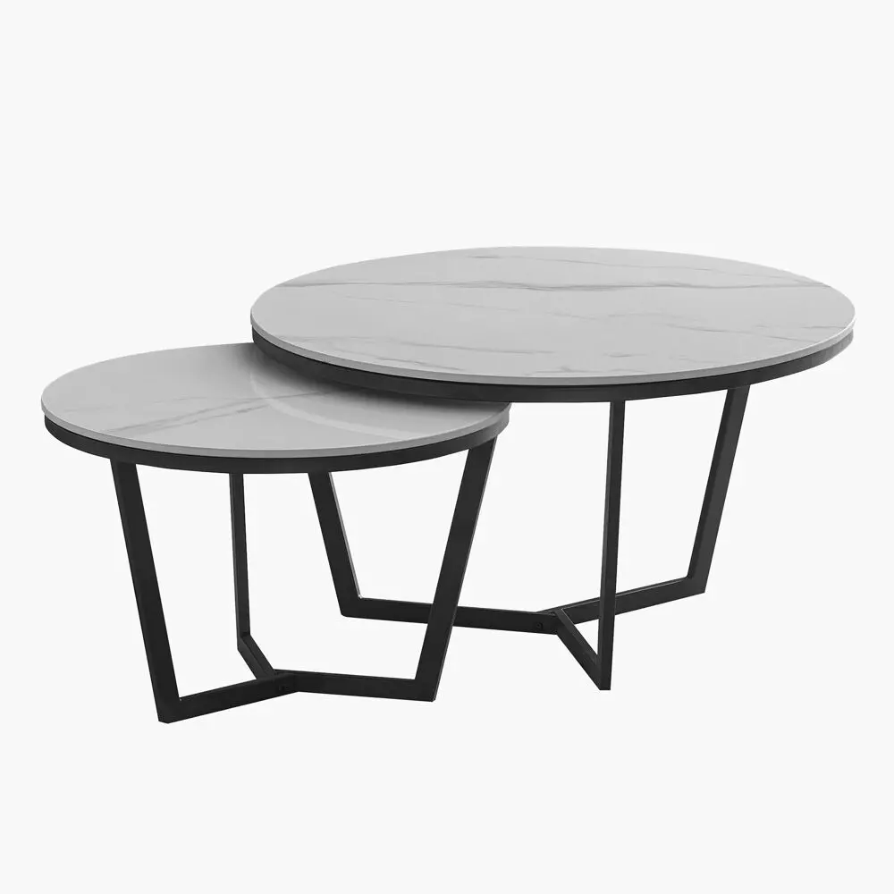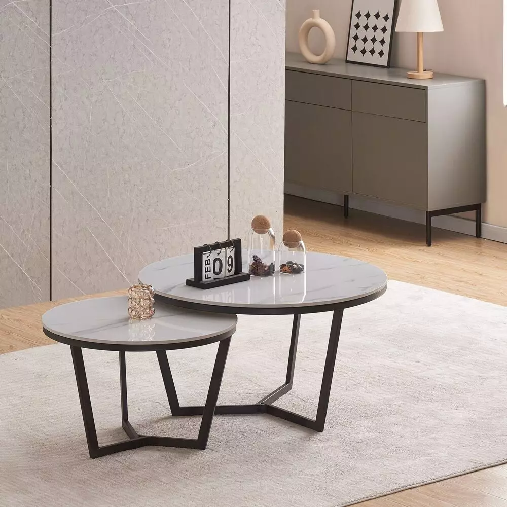 طاولة 1 القُطر: 80 سم x الوزن: 14 كجم x الارتفاع: 45 سم طاولة 2 القُطر: 60 سم x الوزن: 12 كجم x الارتفاع: 40 سم |