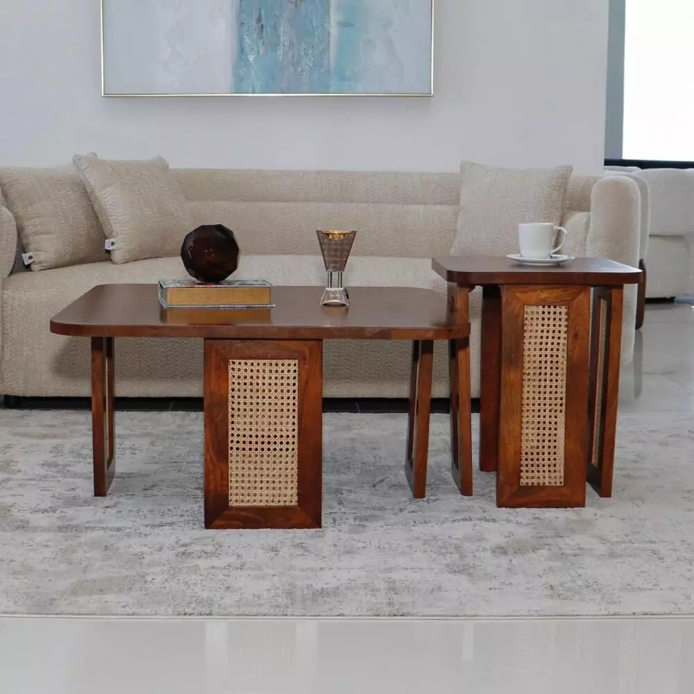 هذا الطقم الرائع مصنوع من خشب طبيعي هندي عالي الجودة يتميز بلمسة كلاسيكية وأنيقة تضيف طابعاً دافئاً لمنزلك. يتكون الطقم من طاولة قهوة كبيرة مع طاولتين جانبيتين بأحجام متناسقة. التصميم يجمع بين الأصالة والبساطة، مما يجعله مناسباً لمختلف أنماط الديكور الداخلي.