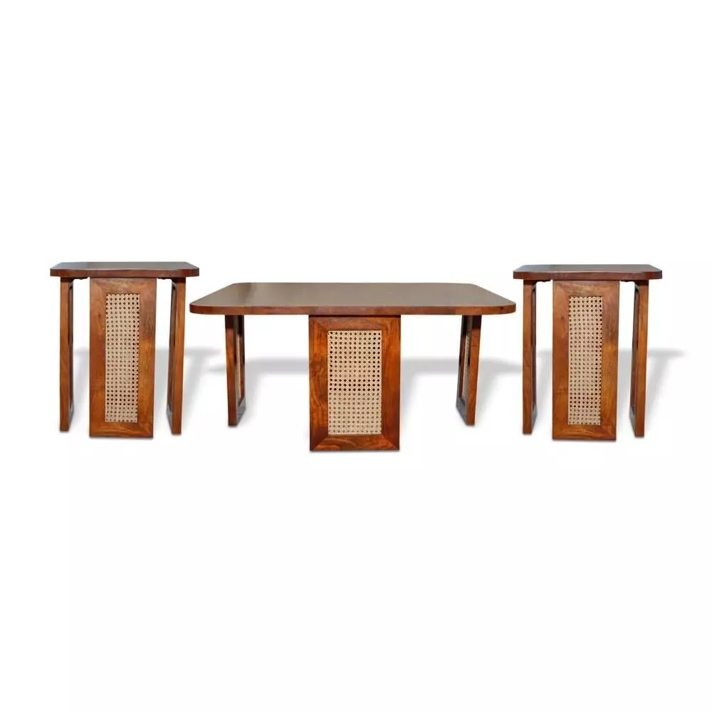 أنت تراجع:طقم طاولة قهوة وطاولات جانبية 3 قطع خشب هندي طبيعي راين - بني