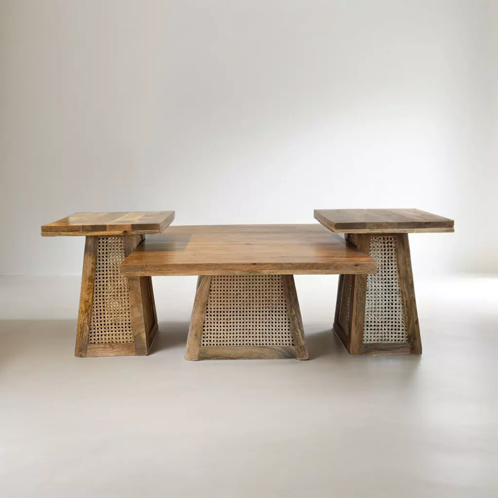 طقم طاولة قهوة 3 قطع مع تفاصيل مميزة تجمع بين التصميم العصري والجودة العالية لإضفاء لمسة أنيقة على المساحة المعيشية في منزلك.