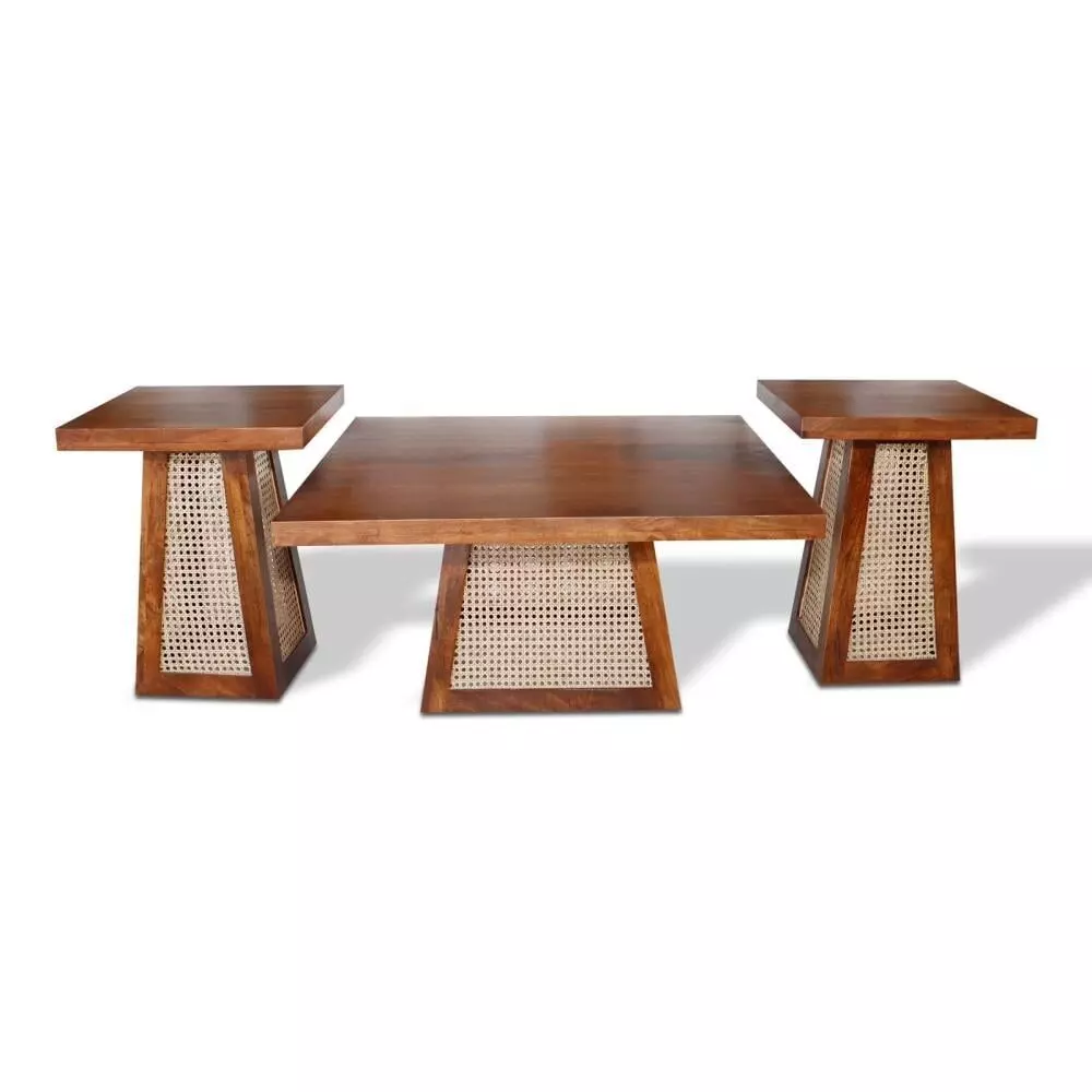 طقم طاولة قهوة 3 قطع خشب هندي طبيعي