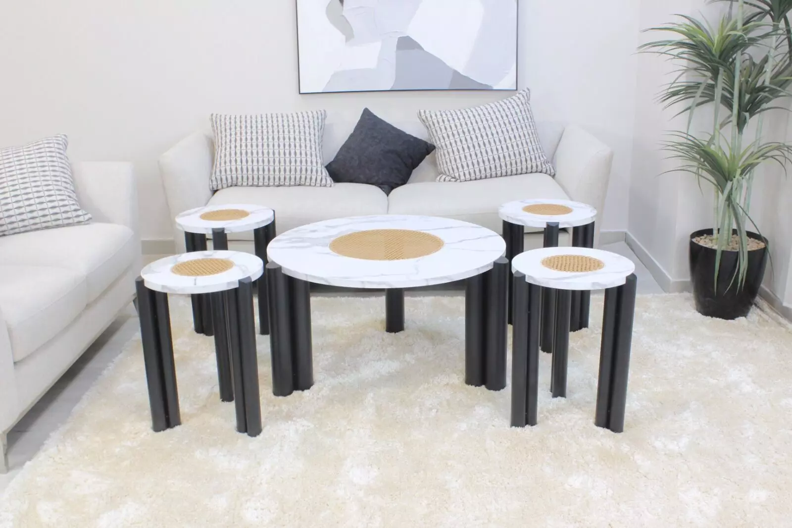 | يتضمن الطقم | 1 طاولة قهوة - 4 طاولة جانبية فقط |
