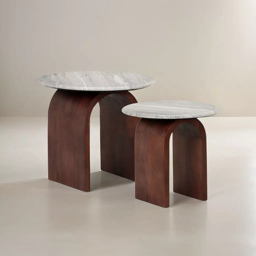 | يتضمن الطقم | 1 طاولة جانبية كبيرة 1 طاولة جانبية صغيرة فقط |