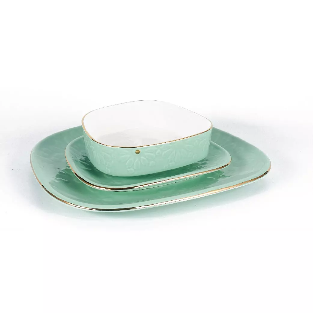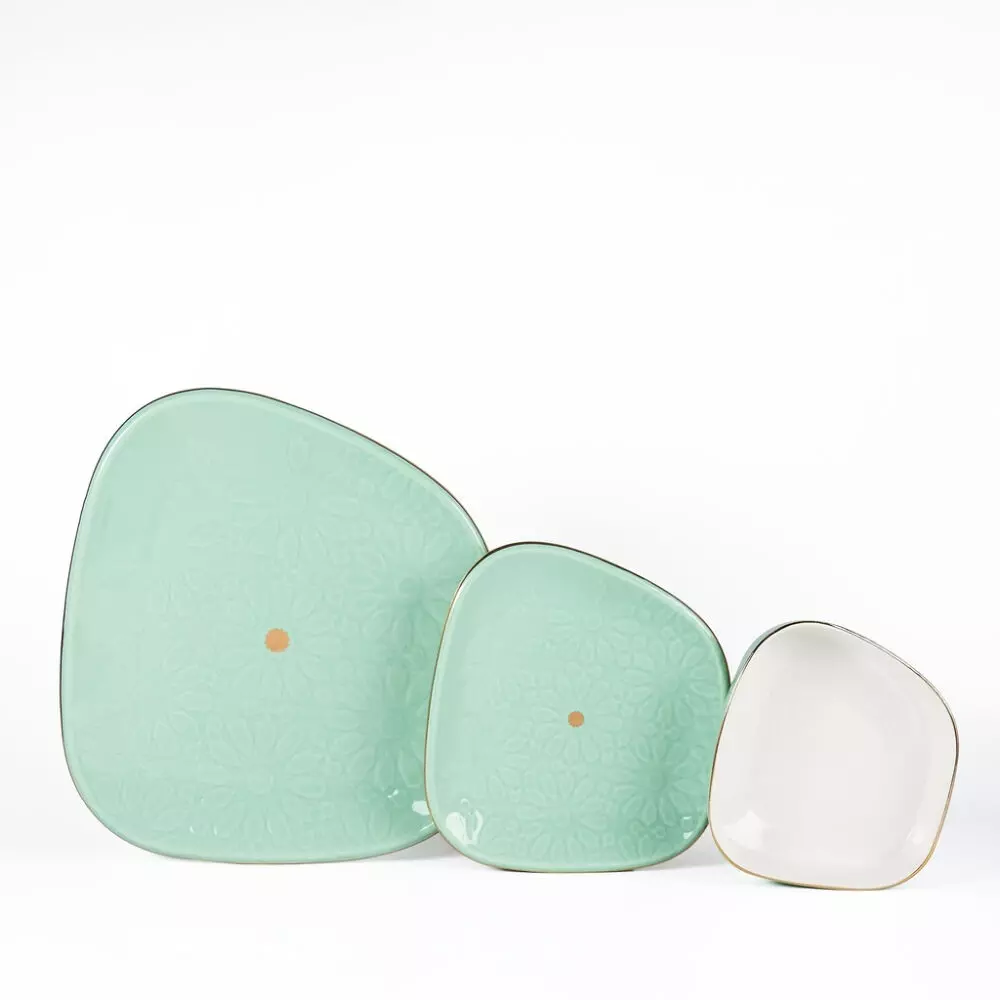 مقاسات صحن الحلى: القطر 19 سم مقاسات صحن العشاء: القطر 28 سم مقاسات صحن الشوربة: القطر 15 سم |