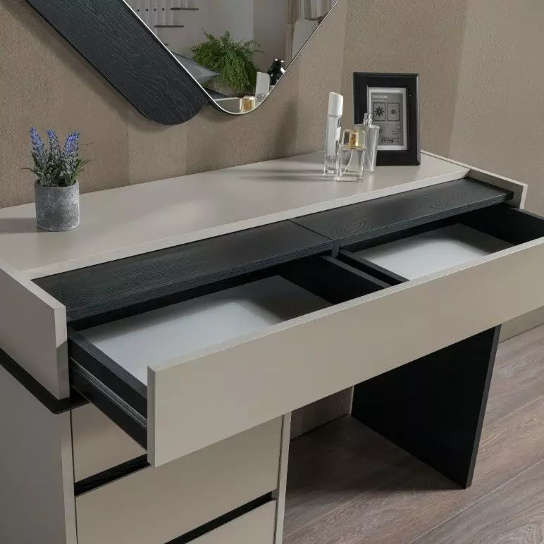 يتضمن الطقم 2 كومدينو - 1 سرير - 1 طاولة تزيين مع مرآة