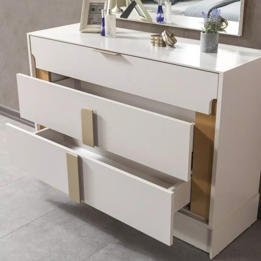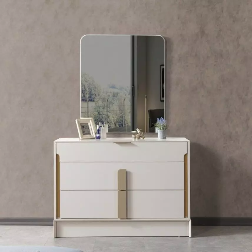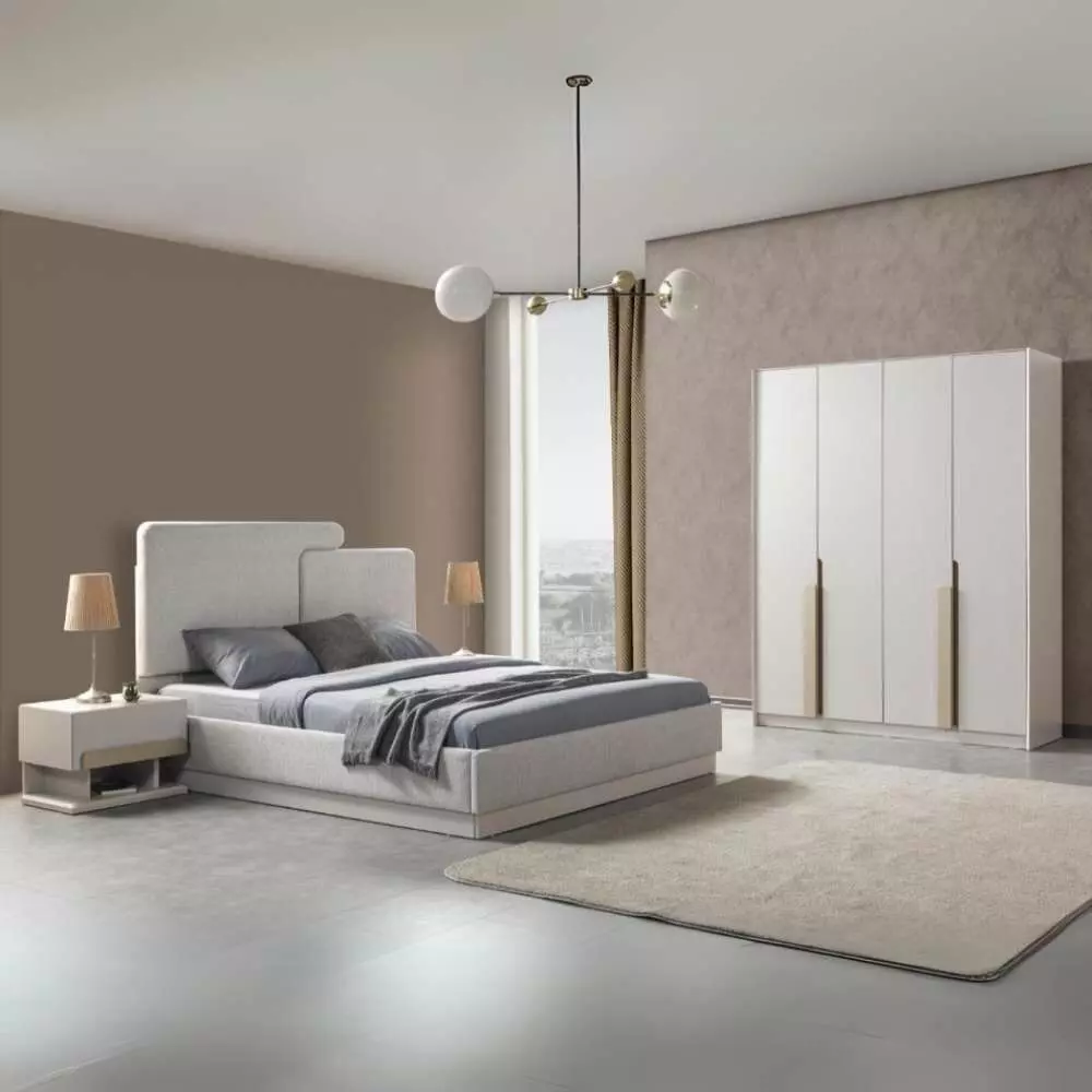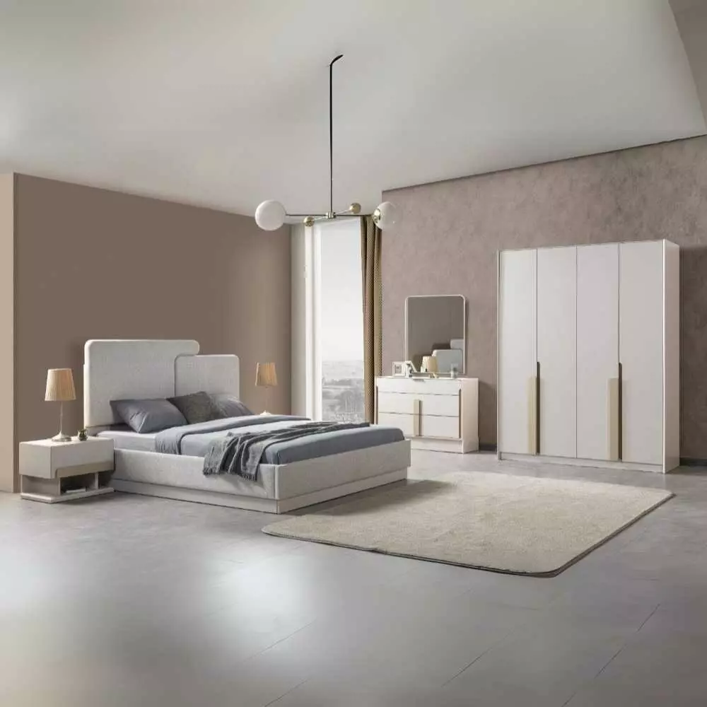 | يتضمن الطقم | 1 سرير - 2 كومدينو - 1 طاولة تزيين مع مرآة |