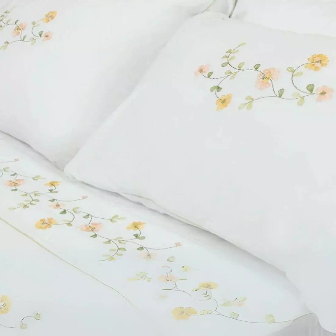 طقم غطاء سرير 200 غرزة 6 قطع باستل فلاور - ابيض