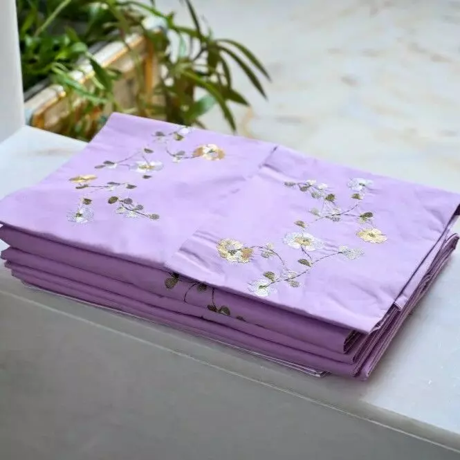 2 غطاء وسادة مطرز 2 غطاء وسادة ساده 1 شرشف سرير مطرز 1 ملاية سرير |