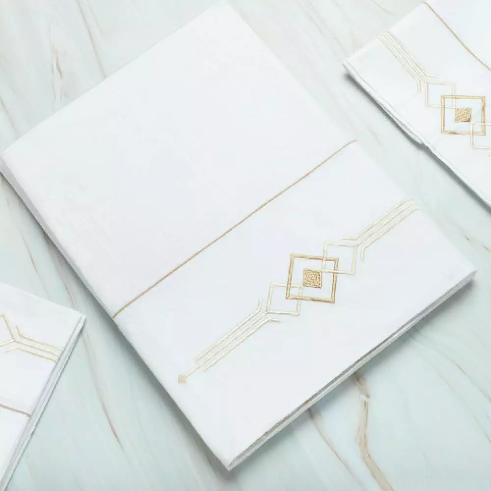 2 غطاء وسادة مطرز 2 غطاء وسادة ساده 1 شرشف سرير مطرز 1 ملاية سرير |