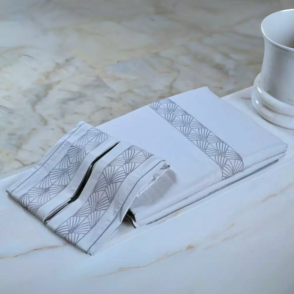 2 غطاء وسادة مطرز 2 غطاء وسادة ساده 1 شرشف سرير مطرز 1 ملاية سرير |