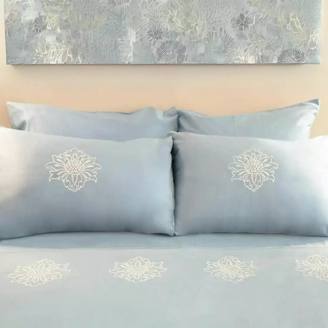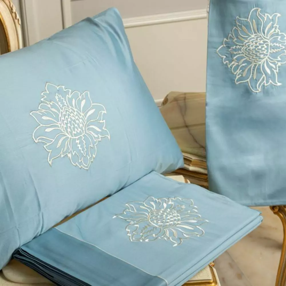 2 غطاء وسادة مطرز 2 غطاء وسادة ساده 1 شرشف سرير مطرز 1 ملاية سرير |