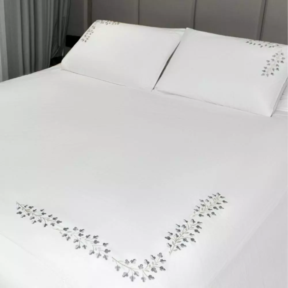 2 غطاء وسادة مطرز 2 غطاء وسادة ساده 1 شرشف سرير مطرز 1 ملاية سرير |