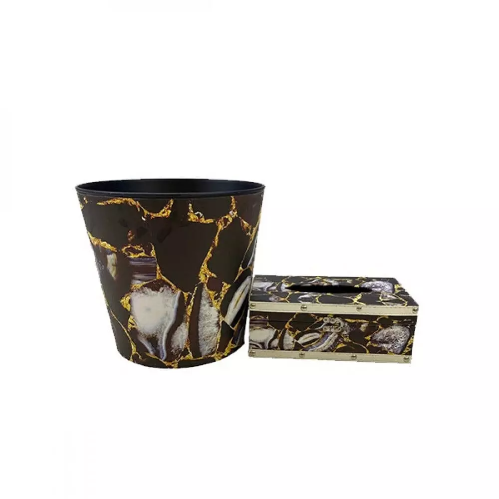طقم قطعتين سله وعلبة مناديل - اسود وذهبي