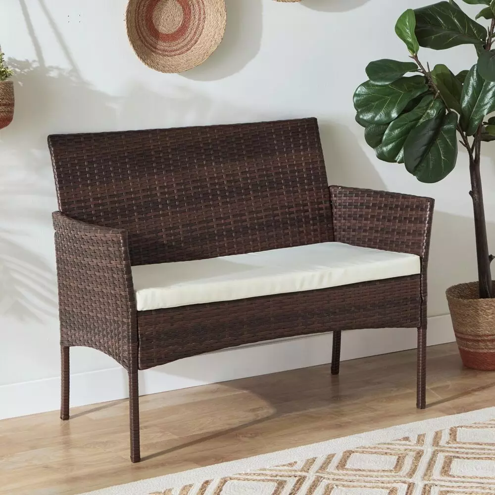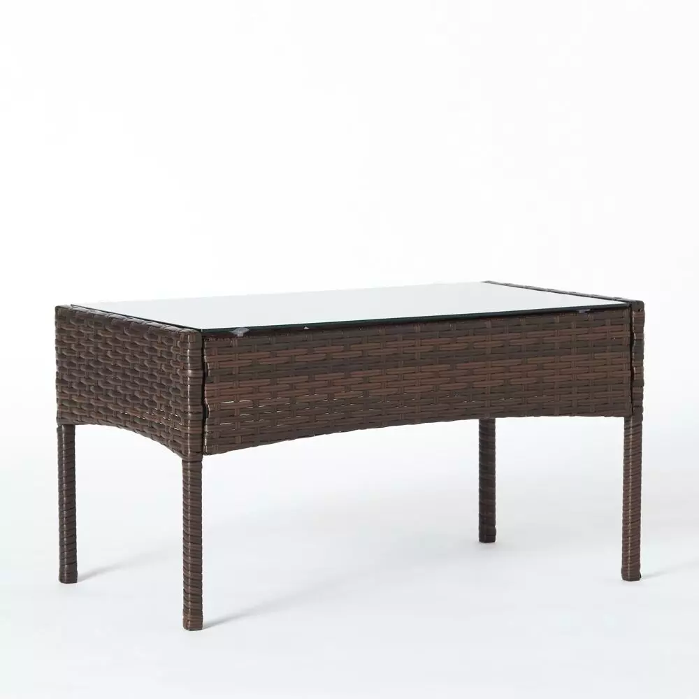 استمتع بالهواء الطلق بأناقة مع طقم الطاولة المكون من أربع قطع. مكون من كنبة وكرسيين بذراعين وطاولة قهوة، جميع القطع مزوّدة بإطار متين وقوي. توفر المقاعد المنجدة جلسة فخمة، مما يجعله مثالي للاسترخاء في الهواء الطلق سواء في شرفتك أو حديقة منزلك.