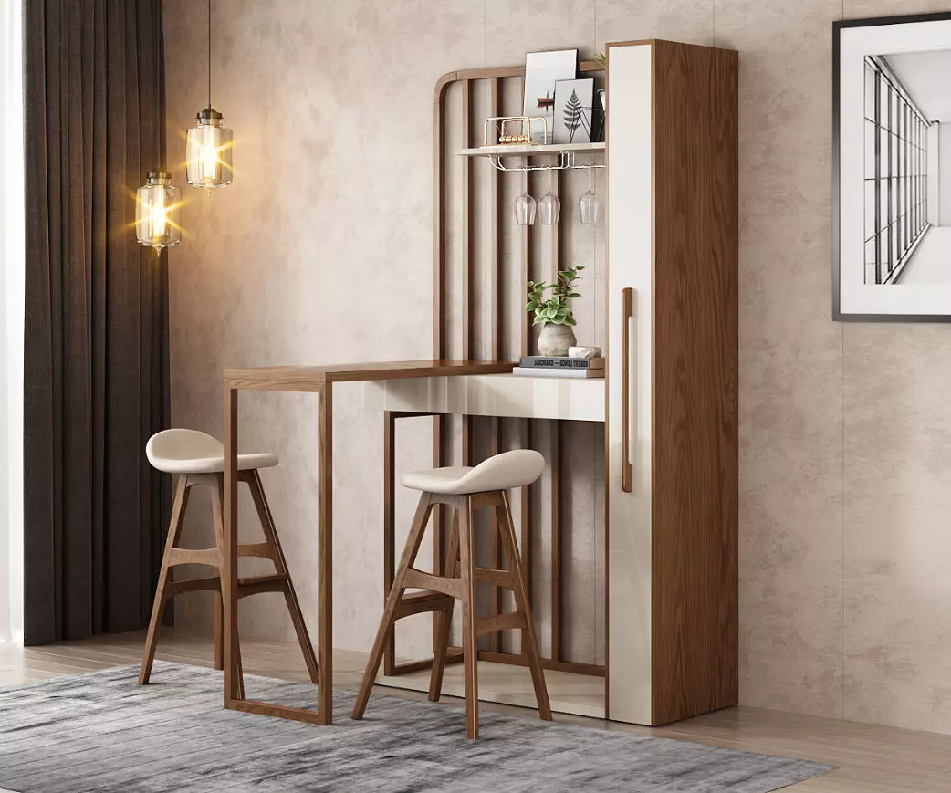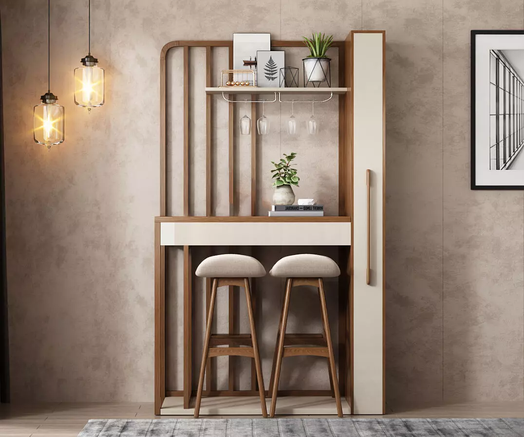 ولا ننسى وحدة الرفوف المتصلة بالطاولة والتي تتضمن درجاً طولانياً يحوي عدة رفوف تتيح لك وضع الأكواب والزجاجات , أكياس الشيبس والبسكويت وأي شيء تحتاجه في متناول يدك.