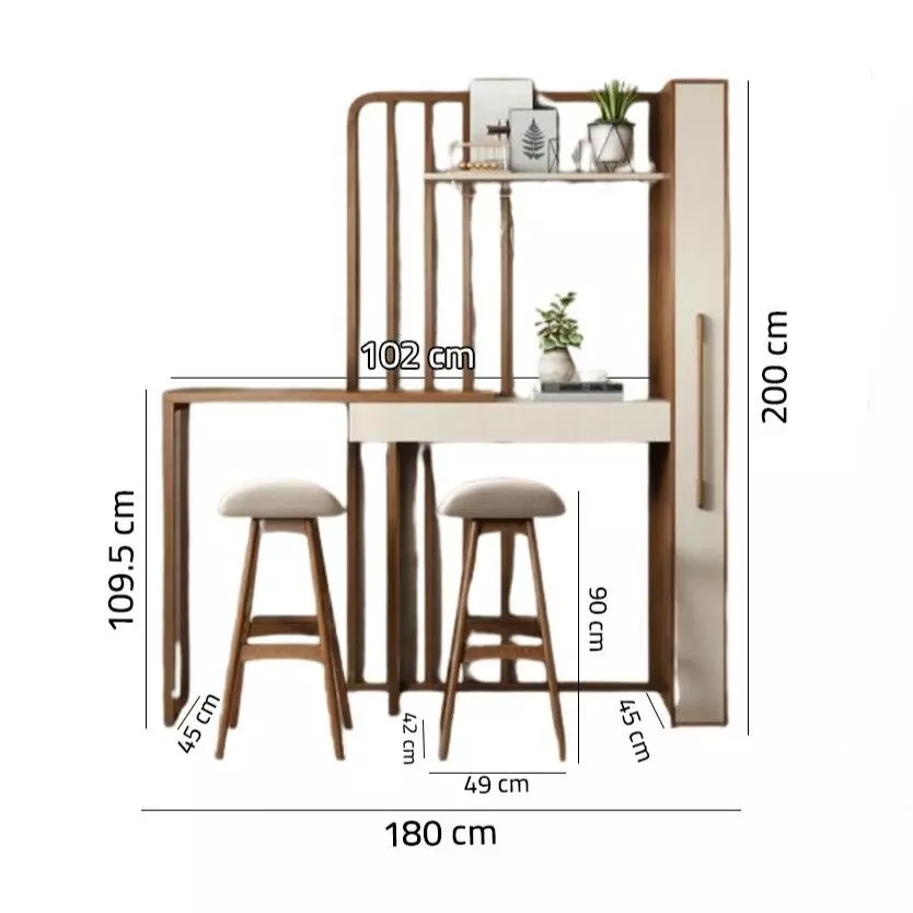 مقاس الطاولة الطول 102 سم * العرض 45 سم * الارتفاع 109.5 سم