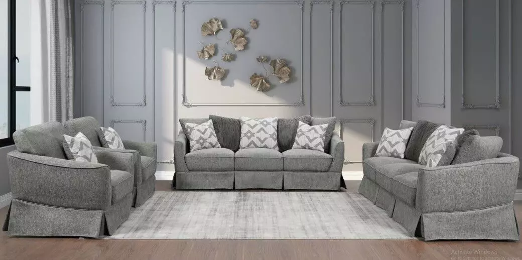 • اكتشف جوهر الراحة والأناقة مع طقم كنب جرييس بلون رمادي أنيق وساحر، مع تفاصيل مميزة وخامات فاخرة تتحمل الاستخدام اليومي بكل سهولة.