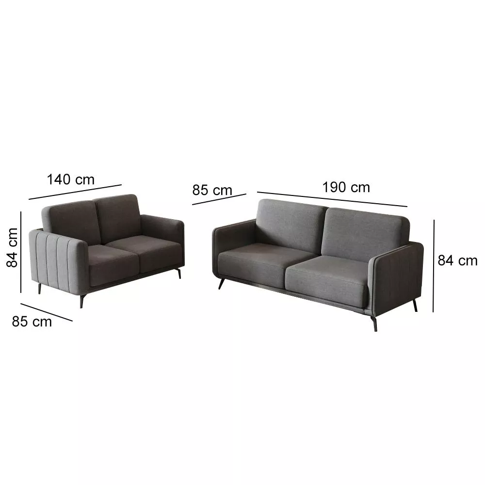 ابعاد الكنبة الثنائي العرض 140 - العمق 85 - الارتفاع 84 سم ابعاد الكنبة الثلاثية العرض 190 - العمق 85 - الارتفاع 84 سم ارتقاع القدم 15 سم |
