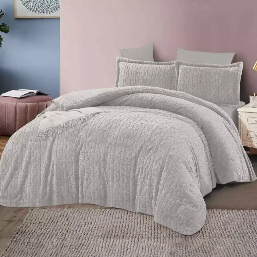 | يتضمن الطقم | 1 طقم لحاف + 1 غطاء سرير + 2 غطاء مخدة + 2 غطاء مخدة مع حواف |