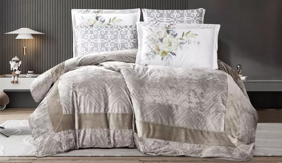 | يتضمن الطقم | 1 لحاف مزدوج + 1 غطاء سرير + 2 غطاء مخدة + 2 غطاء مخدة مع حواف |