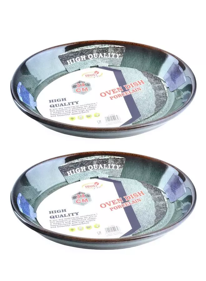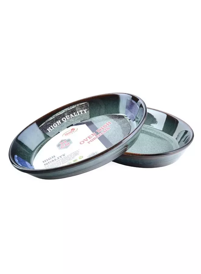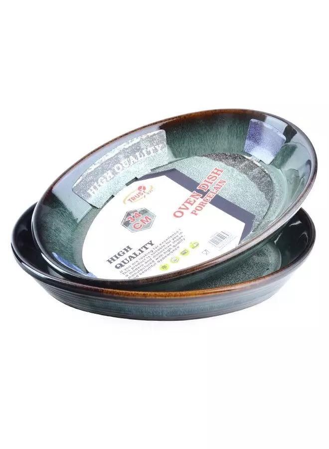 طقم 2 صينية فرن بيضاوية بورسلين مقاس 34 - اخضر غامق