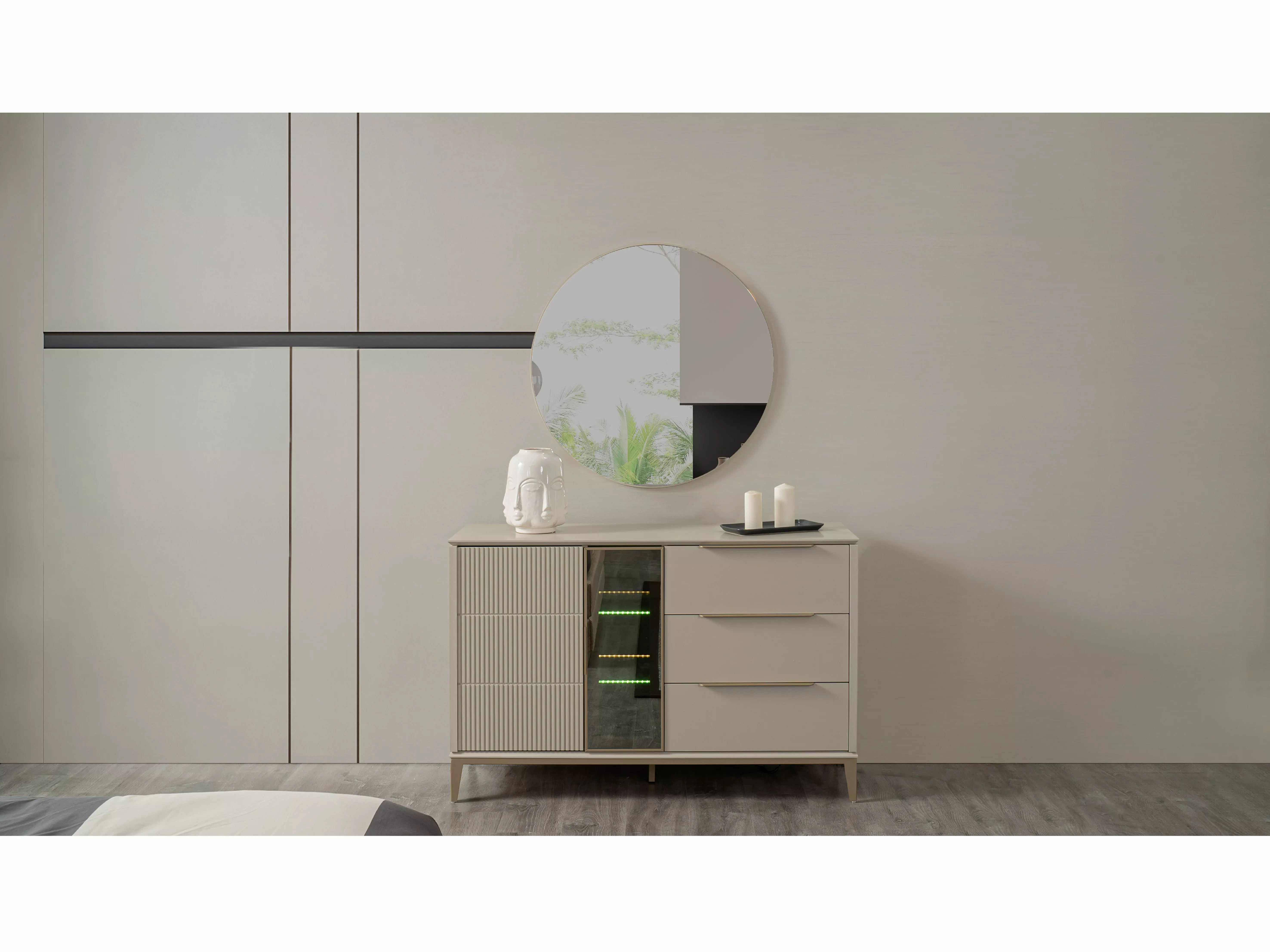 | يتضمن الطقم | سرير مزودج - 2 كمدينة بجانب السرير - تسريحة مع مرايا - أدراج أرفف |