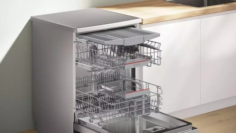 غسالة الصحون بوش من سلسلة Serie 4 تجمع بين التصميم الأنيق والتقنيات المتقدمة، مثل نظام التجفيف الفعّال ايفيشنت دراي وتقنية هوم كونتت، لتوفير تجربة تنظيف مثالية وراحة قصوى.
