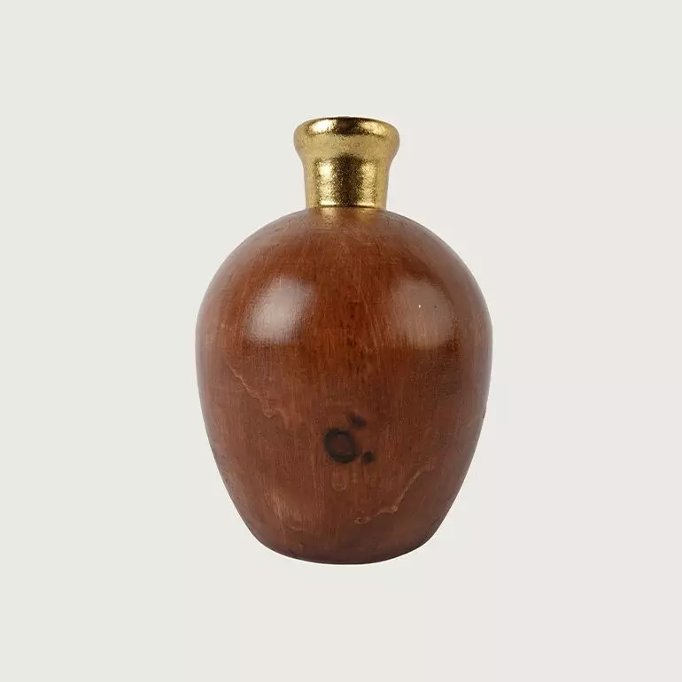 فازة إبداعية مصنوعة من الخشب, يمكن تزيينها بوضع نبات إصطناعي أو أزهار حقيقية بداخلها وعرضها على طاولة الطعام أو في غرفة المعيشة.