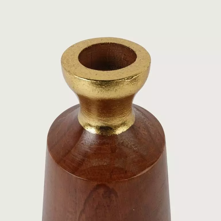 فازة إبداعية مصنوعة من الخشب, يمكن تزيينها بوضع نبات إصطناعي أو أزهار حقيقية بداخلها وعرضها على طاولة الطعام أو في غرفة المعيشة.
