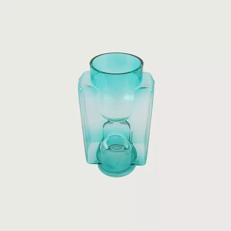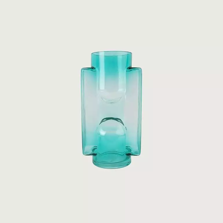 فازة إبداعية مصنوعة من الزجاج باللون الأخضر, يمكن تزيينها بوضع نبات إصطناعي أو أزهار حقيقية بداخلها وعرضها على طاولة الطعام أو في غرفة المعيشة.