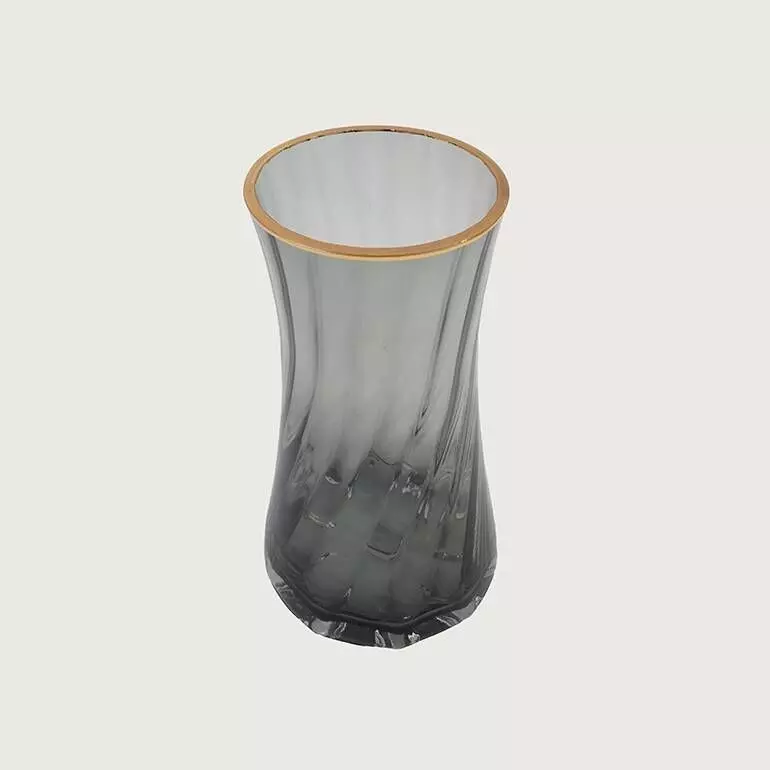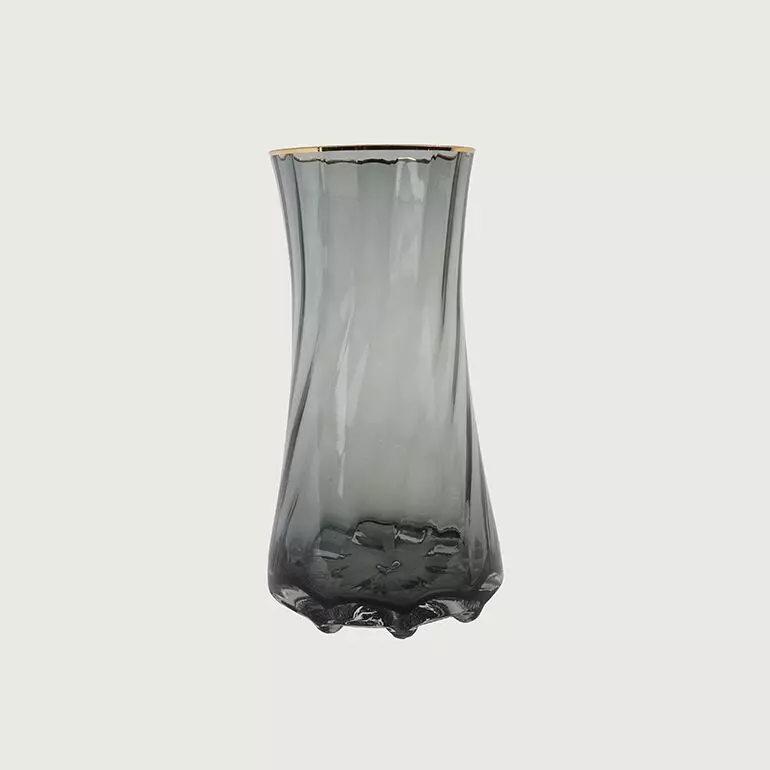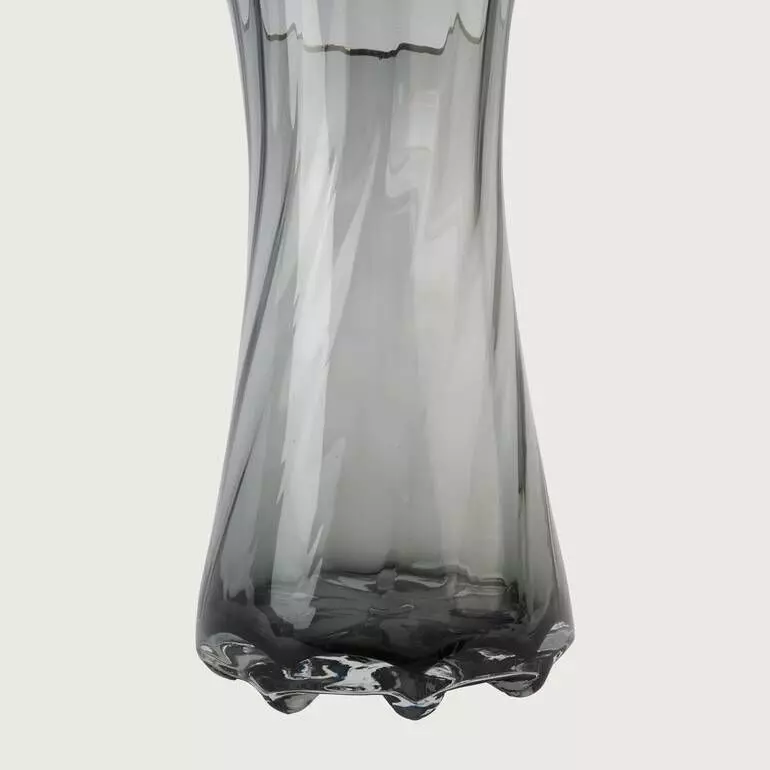 فازة إبداعية مصنوعة من الزجاج باللون الرمادي, يمكن تزيينها بوضع نبات إصطناعي أو أزهار حقيقية بداخلها وعرضها على طاولة الطعام أو في غرفة المعيشة.