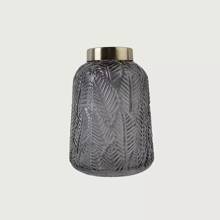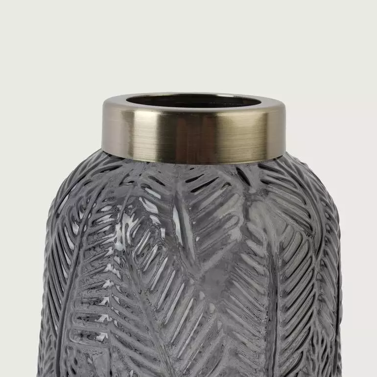 فازة إبداعية مصنوعة من الزجاج باللون الرمادي, يمكن تزيينها بوضع نبات إصطناعي أو أزهار حقيقية بداخلها وعرضها على طاولة الطعام أو في غرفة المعيشة.